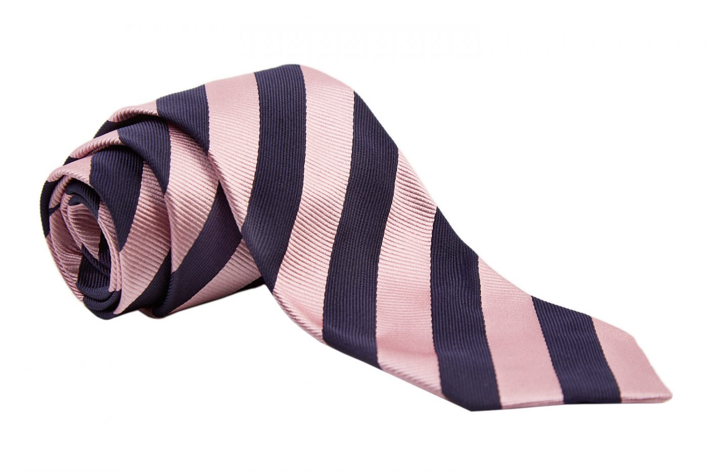 Γραβάτα μπλε με ροζ ρίγες, Μετάξι 100%