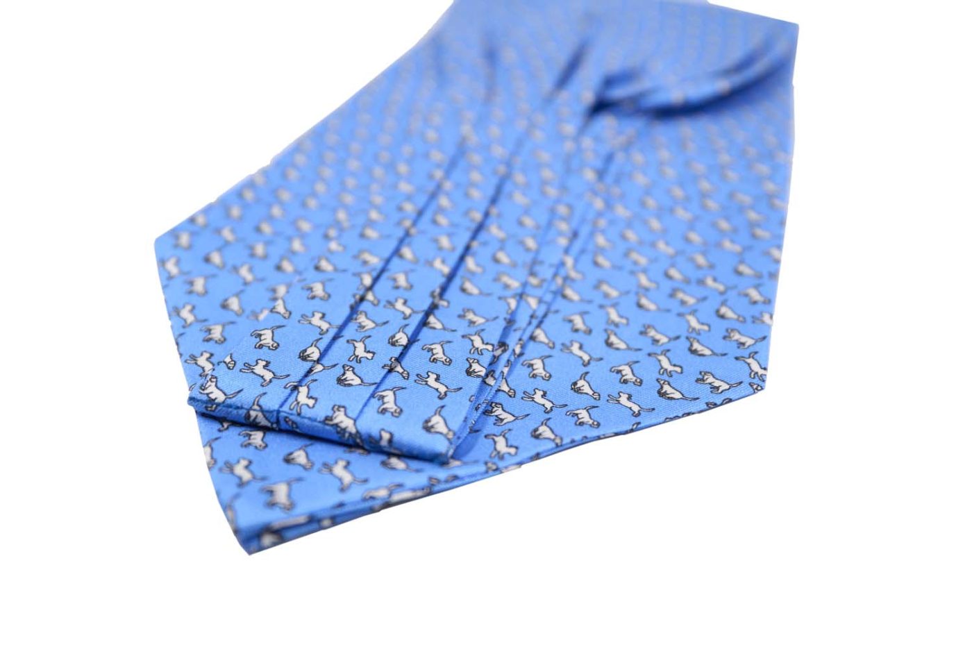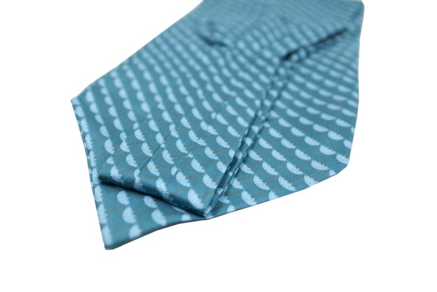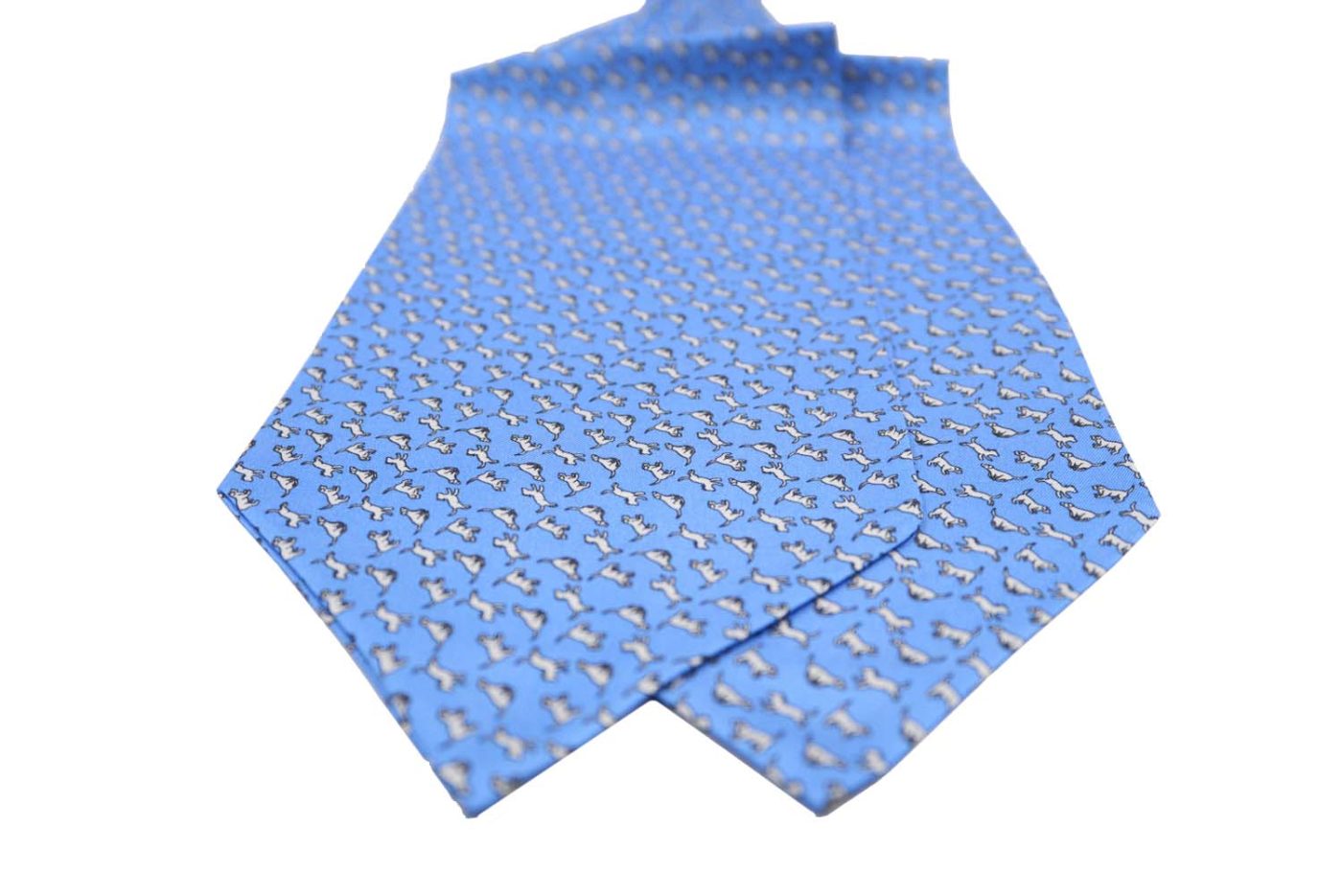 Μεταξωτό φουλάρι λαιμού Ascot σε γαλάζια απόχρωση με λευκά σκυλάκια.