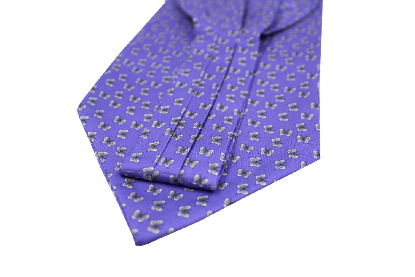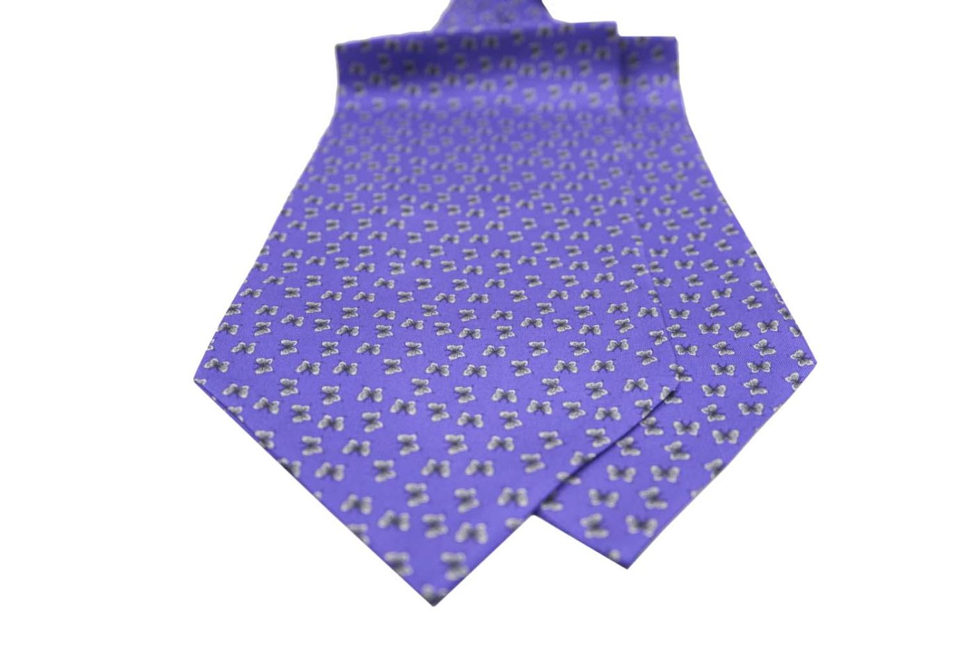 Μεταξωτό φουλάρι λαιμού Ascot σε μωβ απόχρωση με γκρι πεταλούδες.