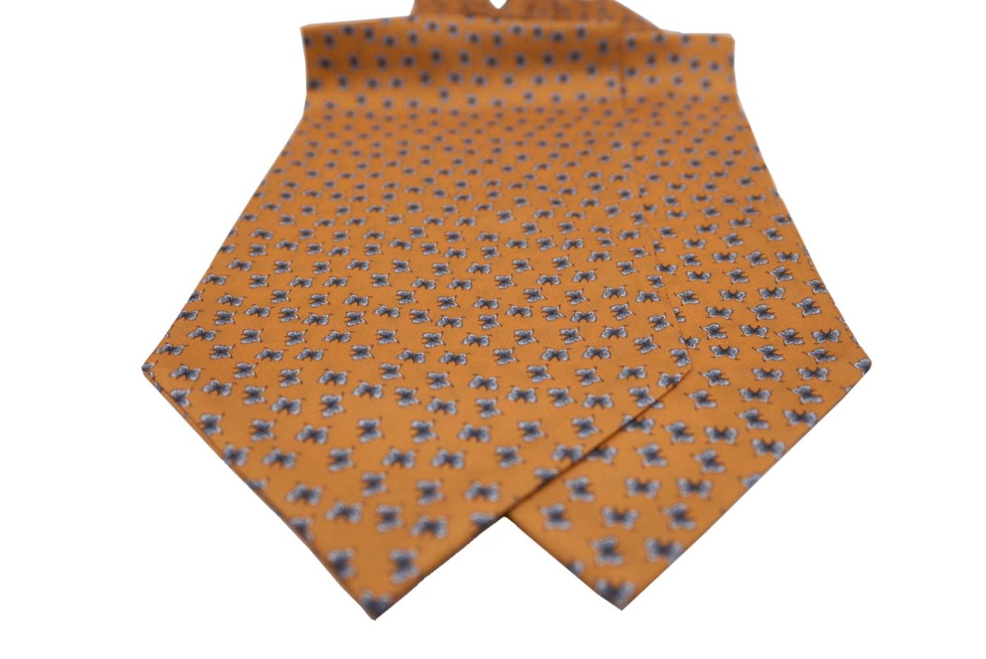 Μεταξωτό φουλάρι λαιμού Ascot σε πορτοκαλί απόχρωση με γκρι πεταλούδες.