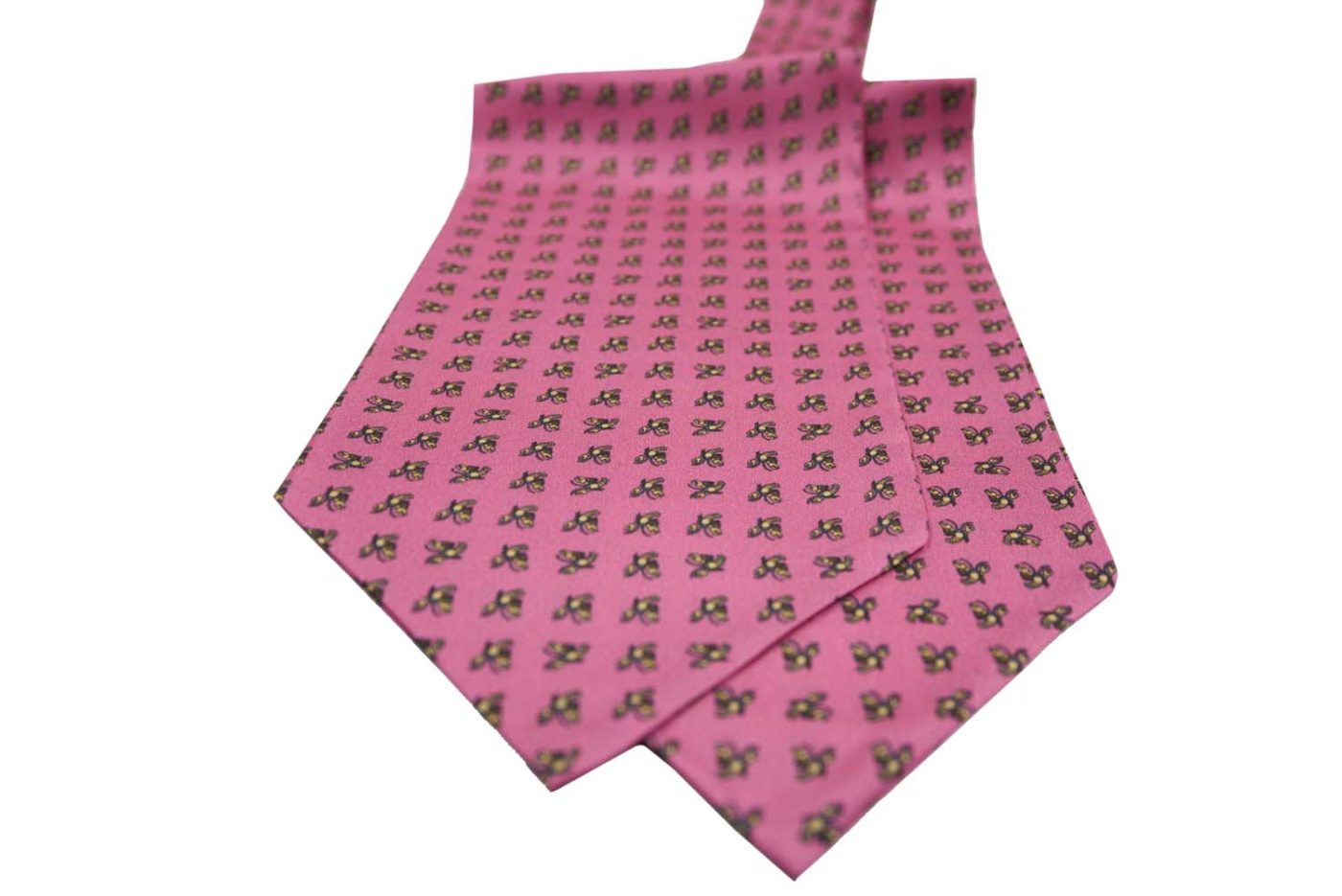 Μεταξωτό φουλάρι λαιμού Ascot σε ροζ απόχρωση με κίτρινους αστακούς.