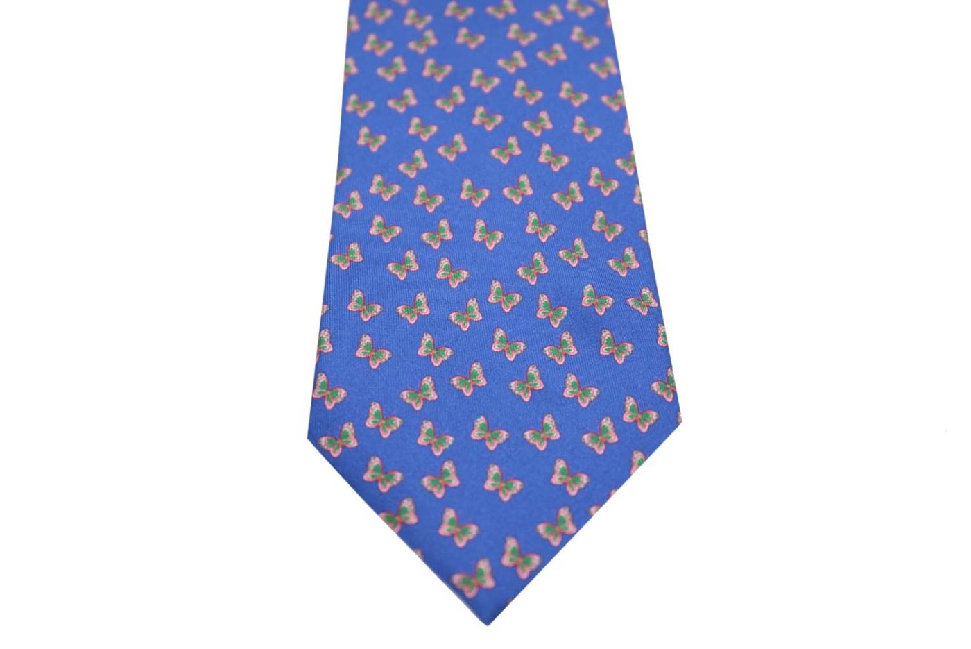 Μπλε γραβάτα από απαλό, φίνο μετάξι, διακοσμημένη με ροζ πεταλούδες και διακριτικές πράσινες λεπτομέρειες που χαρίζουν ζωντάνια και χαρακτήρα. Η μεταξένια υφή της προσφέρει κομψή λάμψη και πολυτελή αίσθηση, ενώ ο αρμονικός συνδυασμός χρωμάτων δημιουργεί ένα ιδιαίτερο, καλαίσθητο αποτέλεσμα, ιδανικό για όσους θέλουν να ξεχωρίζουν με διακριτική πρωτοτυπία.
