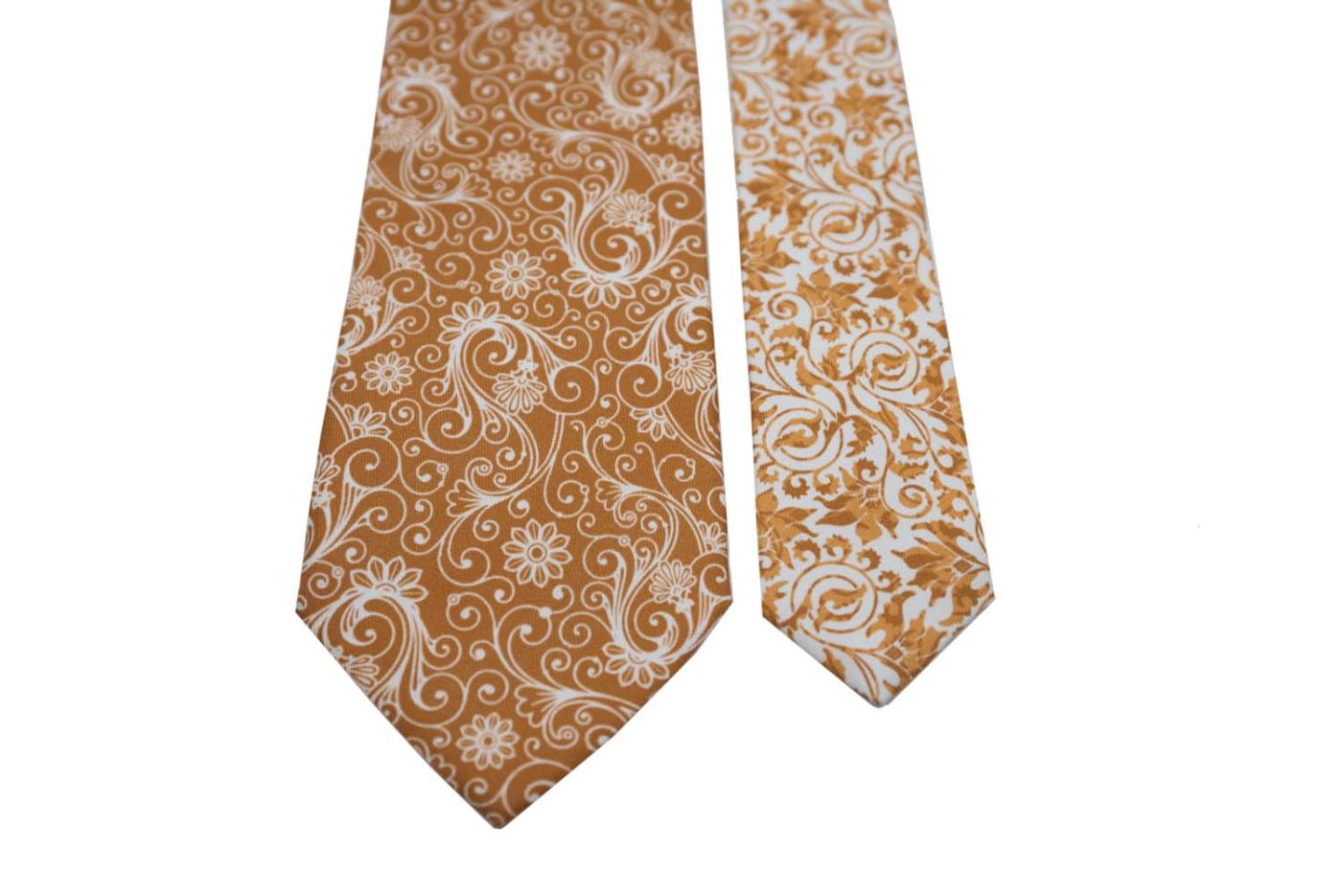 Πορτοκαλί γραβάτα με κομψό μοτίβο από λευκά λαχούρια, που χαρίζει ζωντάνια και χαρακτήρα χωρίς να χάνει την κομψότητά της. Κατασκευασμένη από απαλό μετάξι, με όμορφη υφή και ομαλή πτώση για έναν καλοσχηματισμένο, elegant κόμπο. Το πίσω μέρος είναι φοδραρισμένο με το ίδιο ύφασμα, και η πίσω πλευρά της έχει αντίστροφη χρωματική εκδοχή: λευκή βάση με πορτοκαλί λαχούρια, προσθέτοντας μια ιδιαίτερη και πολυτελή λεπτομέρεια.