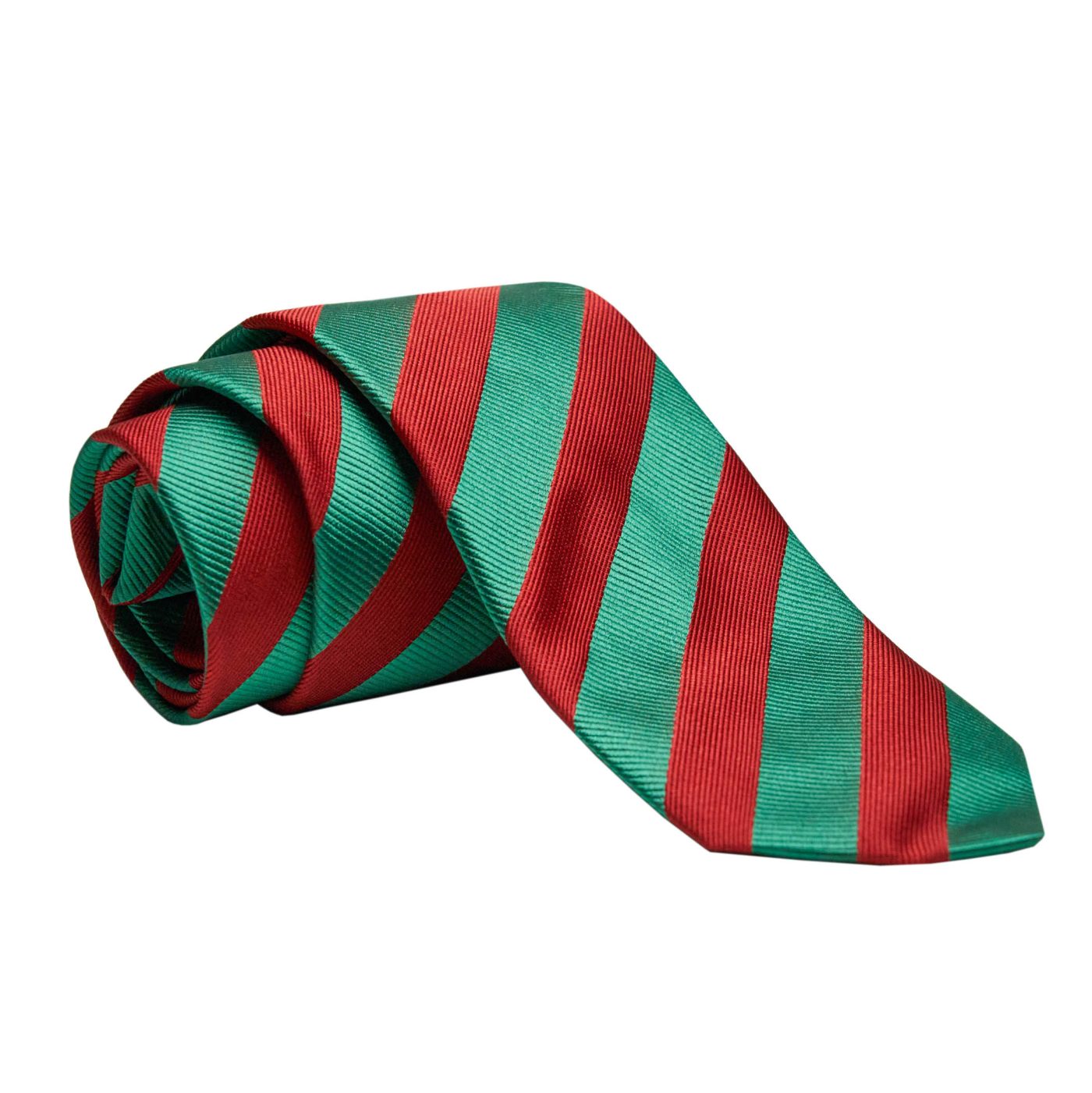 Γραβάτα πράσινη με κόκκινες ρίγες, Μετάξι 100%
