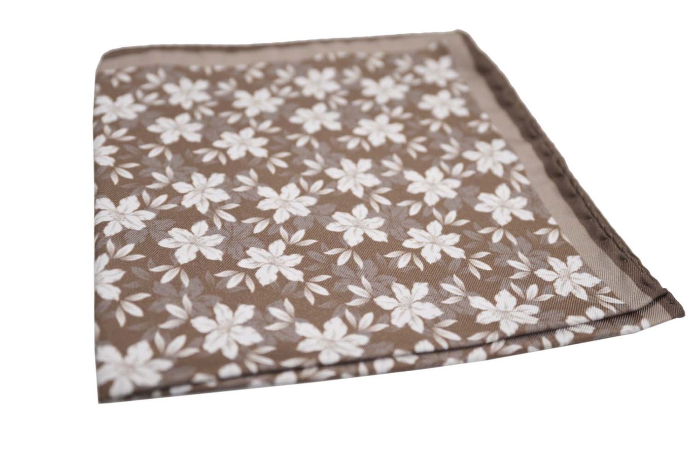 Καφέ μαντήλι τσέπης γεμάτο ζωή, με λευκά λουλουδάκια που ξεφυτρώνουν παιχνιδιάρικα από κάθε γωνιά! Ένα αξεσουάρ γεμάτο χαρακτήρα και ενέργεια, που δίνει μια χαρούμενη και μοναδική νότα στην εμφάνιση.