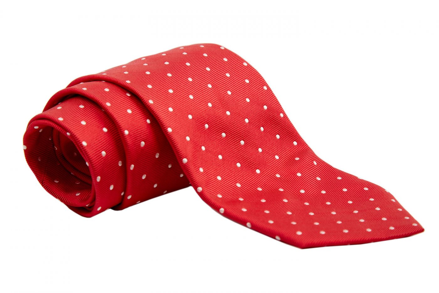 Γραβάτα κόκκινη με λευκό πουά, Μετάξι 100%
